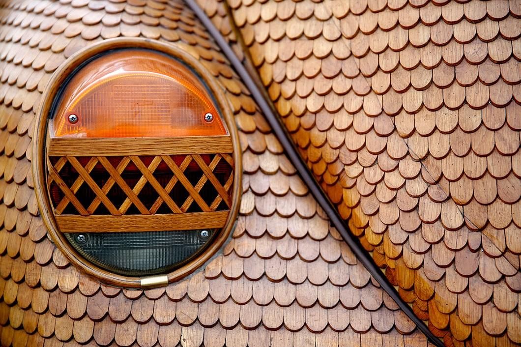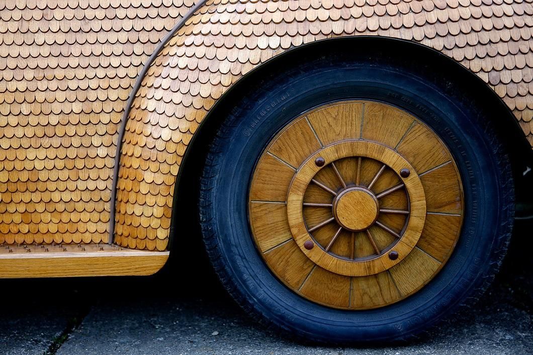 Кузов автомобіля покритий тисячами шматків дуба, на кожен з яких потрібно не менше 23 окремих процедур. У машини дерев'яні кермо, важелі перемикання передач, ковпаки, двірники і навіть радіо.